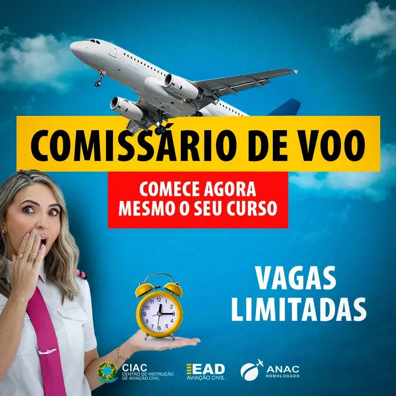 Dê o primeiro passo rumo ao seu futuro como comissário de voo: Início imediato, inicie agora mesmo e enriqueça sua jornada profissional